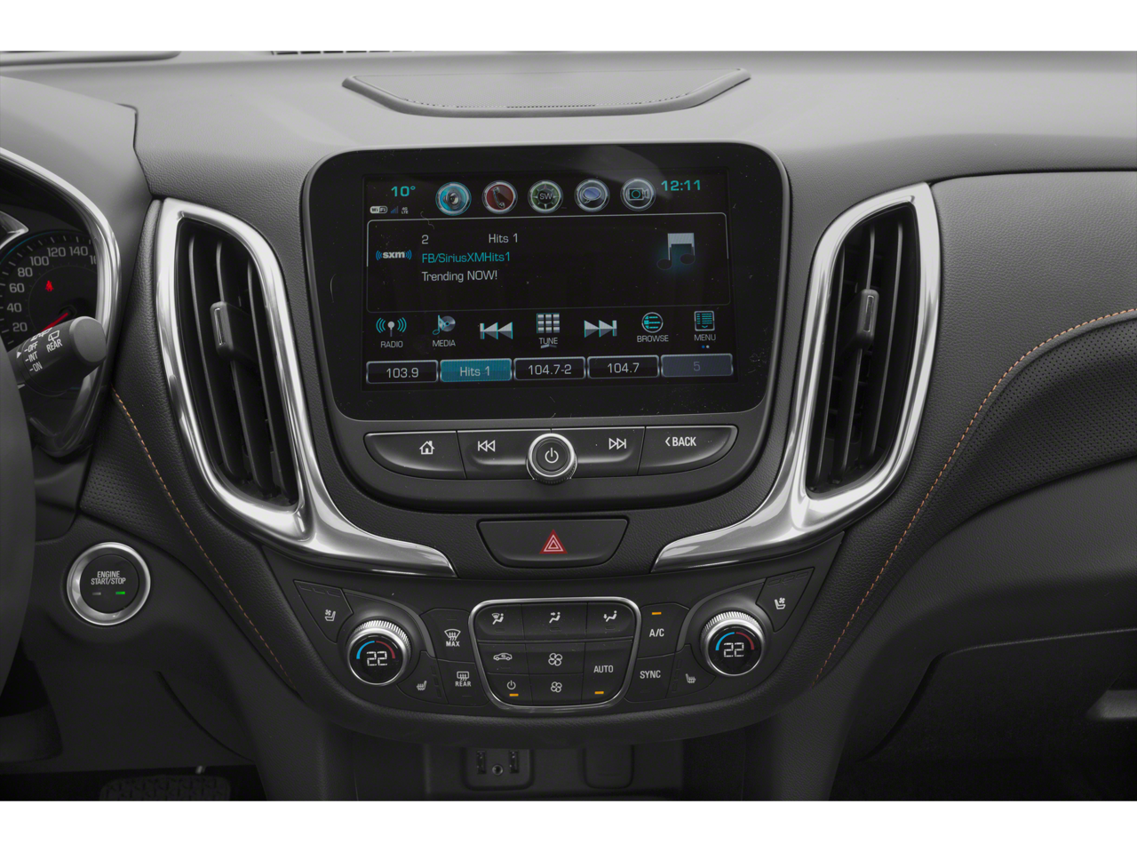 - Audio system, Chevrolet MyLink Radio with 8" diagonal color touch-screen and AM/FM stereo , includes Bluetooth® streaming audio for music and most phones; featuring Android Auto and Apple CarPlay capability for compatible phones